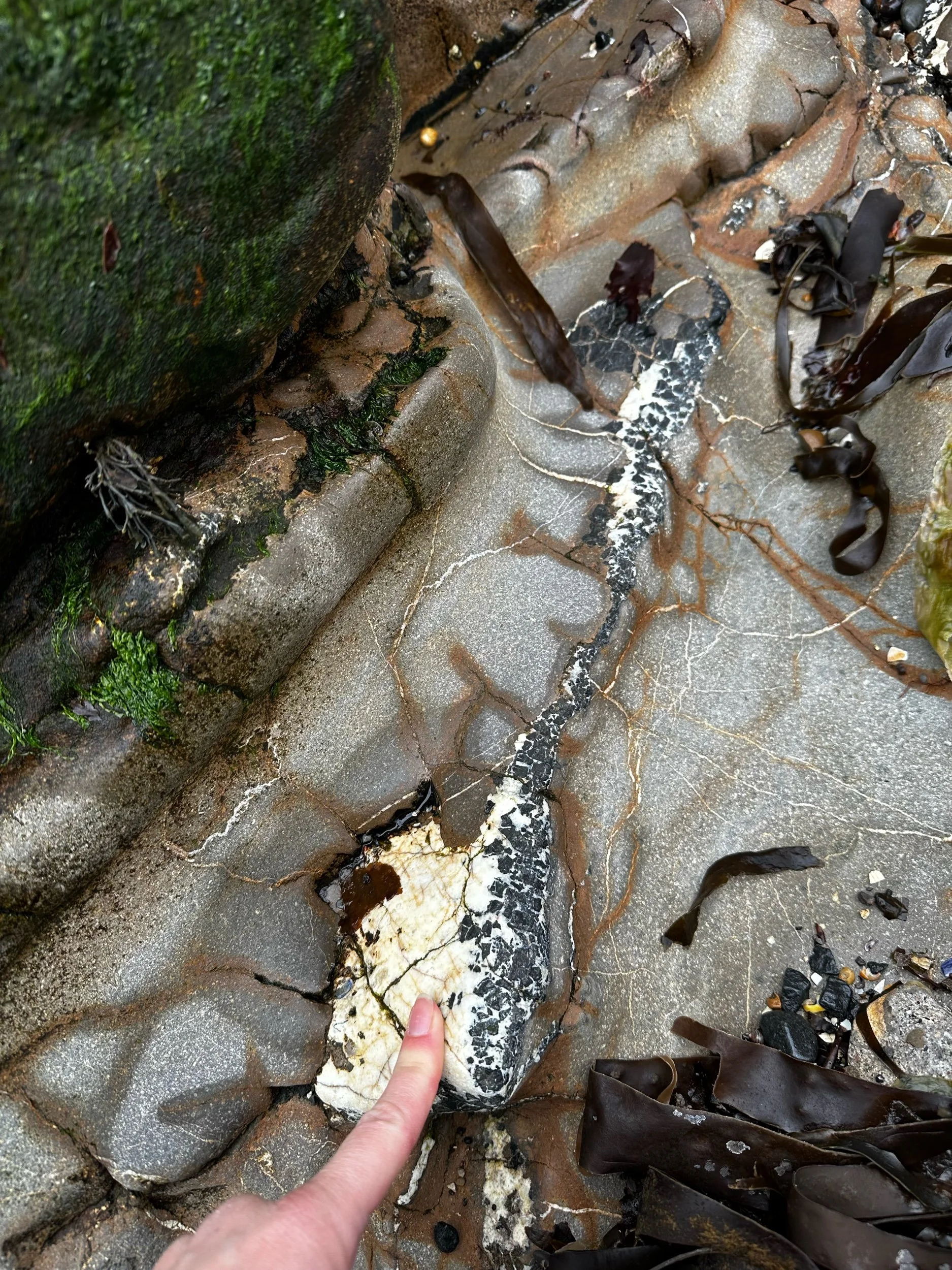 Walk along the intertidal zone where the sea reveals perfect cross-sections through the geology.